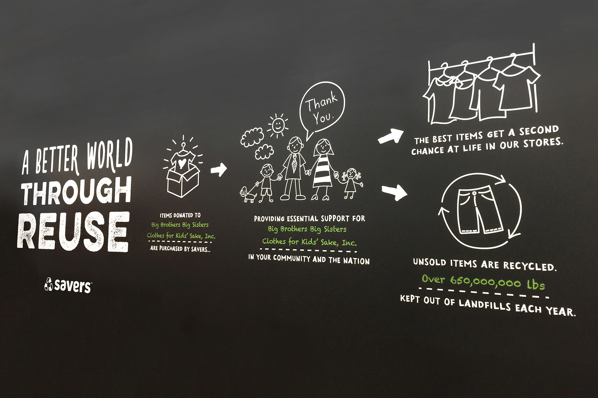 SAVERS IS THE A FOR-PROFIT, GLOBAL THRIFT RETAILER ESTABLISHED IN 1954. THE BRAND OPERATES OVER 330 LOCATIONS AND HAVE 22,000 EMPLOYEES WORLDWIDE.